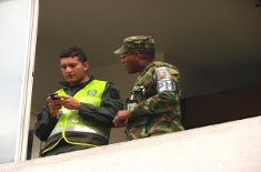 Miembros de la SIPOL, Harold Andrés Loaiza (del lado izquierdo, camisa rayas azul) a su izquierda otro miembro de la SIPOL.