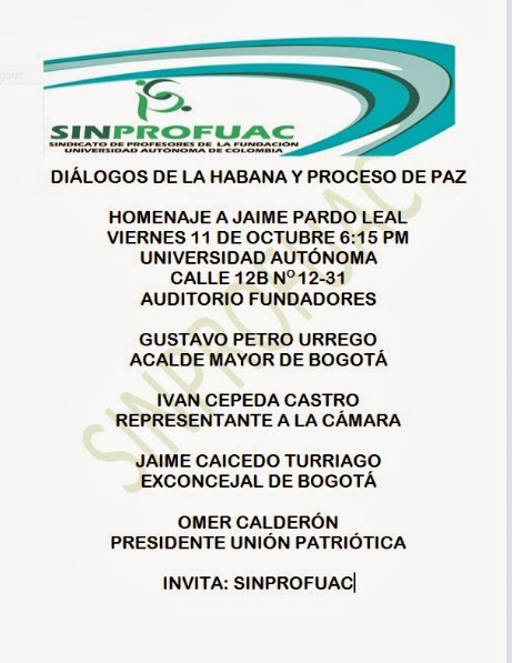 Homenaje al camarada Jaime Pardo Leal.- Viernes 11 de octubre